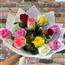 描述: 13枝五彩玫瑰、绿叶、精美包装。
